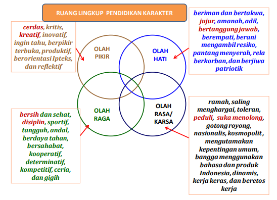 Nilai-nilai yang terkandung dalam pendidikan karakter, antara lain sebagai berikut: